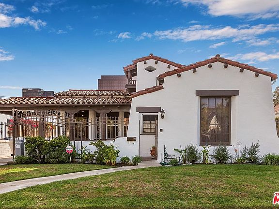 Move-in to this absolutely stunning Spanish home. 3+2 with full guest house. Barrel-ceiling, step-down living room with dramatic floor to ceiling front glass window. Batchelder tile hearth fireplace. 1920's center hall plan, cook's eat-in kitchen. Hardwood floors through out. En-suite master with an additional office/den. French doors from the third bedroom open to the private backyard perfect for entertaining. Gated. One-car garage, plus parking for additional 3. Blocks away to great shops and restaurants on 3rd St., Cedars-Sinai Medical Center and The Grove. This is your chance to move into this highly sought-after Beverly Grove area. Best block on Lindenhurst.