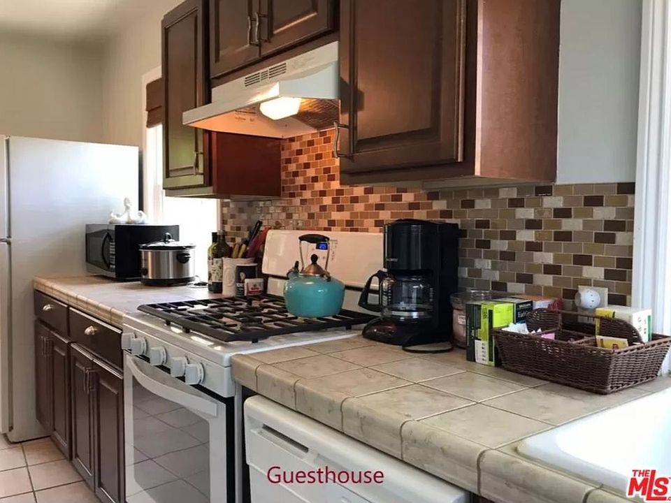 Located a few blocks from the Westchester Golf Course, this lovingly cared for home with verdant landscaping and crisp curb appeal awaits you. Past the covered porch step into a special living space highlighted by rich hardwood floors, elegant raised paneled walls, contemporary moldings and wall sconces, and decorous fireplace with custom tile accents. Continuing on the main level are 3 comfortable bedrooms, modern bathroom with skylight, and well-equipped kitchen designed for the home chef and entertaining with coffee-glazed maple cabinets, granite countertops, stainless steel appliances, instant hot/cold at the sink, pot filler, eat at bar, serving counter, and travertine floors. Beyond the kitchen is an airy step-down family room and upstairs a spacious and private master ensuite. The backyard oasis was created for year-'round enjoyment with both a pergola and gazebo, koi pond, grassy lawn area flanked by soaring palms trees, converted 'man cave' garage, incredible built-in BBQ island, and detached fully-equipped ADU-ready guest house.