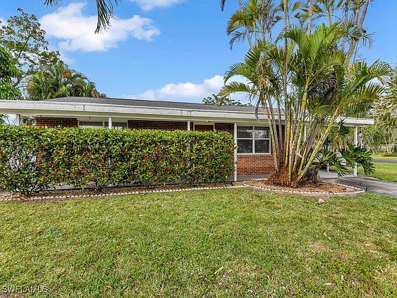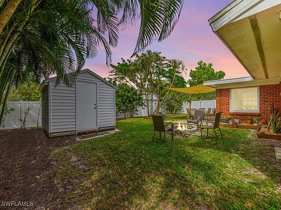 FANTASTIC LOCATION! This single family home is on an oversized corner lot that offers great privacy with a newly added 6FT vinyl fence (2018) that also allows the ability to park an extra vehicle or boat or just easier access with the double doors on the one side. Also in the back yard is an ADDED shed for tools or man cave that features one of kind artwork by a local artist, a built in fire pit and plenty of room to add a pool or extend further on the lanai. The inside features a spacious kitchen w/ living and a dining room, 2 bedrooms, a full bath, large laundry room and an attached carport. Convenient location- close to the beaches, lots of shopping/dining options, entertainment, I-75, RSW international airport and so much more!