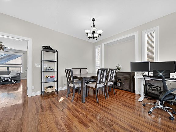 Gas fireplaceSpacious primary bedroomWalk-in closetDouble detached garageExtra parking padCharming front veranda