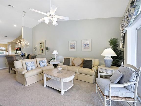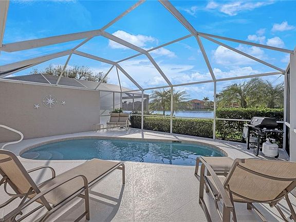 A feeling of peace and tranquility exude in this Turnkey Furnished 2 Bed plus den 2 bath 2 car garage attached villa located in gated Calumet Reserve. Beautiful water views from your lanai with a screened in heated pool and sunset views. Only 84 residences with a community pool and clubhouse in this hidden gem subdivision. Open floorplan with volume ceilings, quartz kitchen countertop with stainless sink and new kitchen & bath faucets, cold water Hydroviv filters for kitchen sink and refrigerator, impact windows, New A/C system, overhead storage added in both bedrooms, new water heater, Bx flood zone. Option to join the award-winning Players Club and Spa with a waitlist currently which features resort-style swimming pools with waterfalls and designated kids' area, a tennis facility with 13 Har-Tru lighted courts, a state-of-the-art 6,000 SF fitness center w planned activities, restaurants, tiki bar, billiards room, pickleball, bocce ball and so much more! Lely Resort Features 3 championship golf courses (2 public 1 private). Lely Resort is located in close proximity to Naples and Marco Island dining, beaches and shopping.