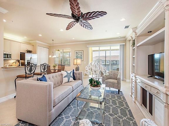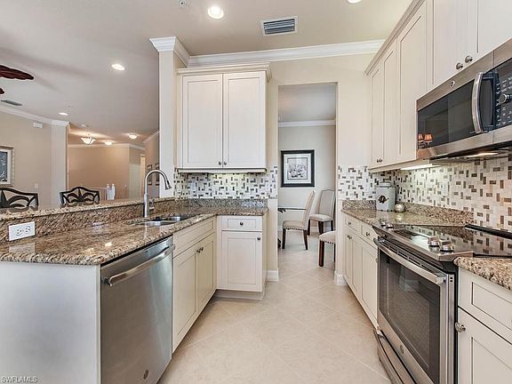 Absolutely PRISTINE, rarely available 2nd flr, lake view, 2 car garage unit in highly desirable Marbella Lakes! Owner has lovingly maintained this sunny showplace and made sure it has everything YOU have been looking for: crown molding, granite countertops, real wood cabinetry, new stainless steel appliances, & brand new carpet in the stairwell and master suite, and mechanized storm shutters on the lanai plus accordian storm shutters on all windows. Ideal floorplan offering an open kitchen, formal dining room, den, powder bath, master suite with a separate door out to the lakeside, screened lanai and a lake view, 2 large walk-in closets, master bath with dual sinks, separate spa tub and generous shower plus a separate water closet. 2 guest bedrooms on the opposite end of the condominium will give your guests loads of privacy and helps to make this special place really feel like a home...Marbella Lakes offers amazing amenties: Huge pool, tennis courts, indoor and outdoor sports courts,a tot lot & water play area, stunning clubhouse and game room...everything you need for fun in the sun!