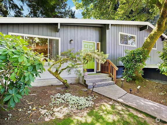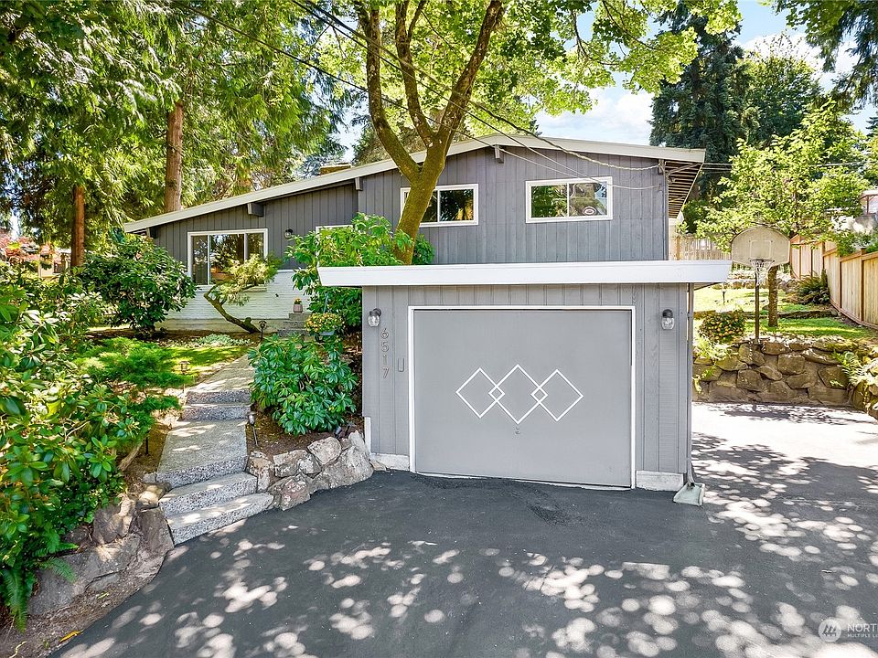 Mid Century Modern dream! Curb appeal, privacy, style, & space in Northshore School Dist. 3 beds & bath on the same floor. Lower has 4th bed, 2nd bath, & additional non-conforming 5th bedroom/flex space w/ access to attached garage. Large deck for entertaining, fruit bearing cherry tree, & mature landscaping on private lot for tranquility, gardening, & furry friends. Over 2,100 sq ft w/ storage that's not included in advertised sq ft. Formal dining w/ French doors off kitchen. Newer windows, sump pump, & torch down roof. Off-street parking can fit RV/boat. Friendly neighborhood. 3 blocks to Swamp Creek Park. 1 mile to Kenmore shops, restaurants, waterfront, Log Boom Park, Burke Gilman, & 522 – perfect for Seattle & Bellevue commuters!