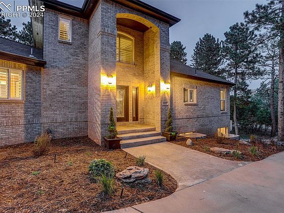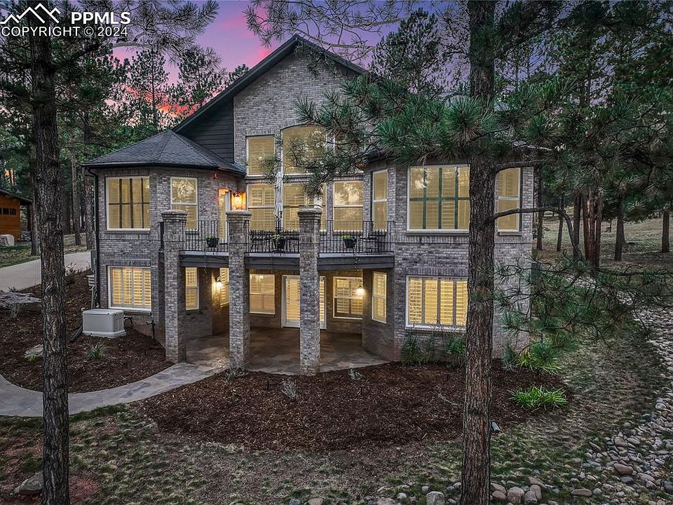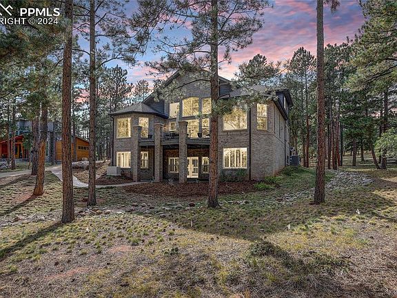 Quality abounds in this custom 2-story brick home on a peaceful nearly 1 acre lot w/soaring Ponderosa pines! This walk-out home features 5 beds, 4 baths, formal dining & kitchen nook, an office & an oversized 1,077 sq. ft. 3-car garage. Designed for convenience, it lives like a ranch-style w/a main-floor primary suite, laundry & access to a large patio & a deck area. Enter inside the foyer to a dramatic curved staircase running from the basement to the 2nd floor. The gourmet kitchen has ample cabinetry, newer granite counters, stainless appliances & opens to dining nook & living room w/a cozy fireplace & 2 story windows for abundant natural lighting w/plantation shutters throughout. The spacious main-floor primary suite is a true retreat, showcasing a beautiful fireplace, deck access, walk-in closet, oversized walk-in shower & jetted tub in the 5-pc bath. Upstairs there's 2 more bedrooms connected by a dual-entry bath. Vaulted ceilings & open spaces enhance the feeling of grandeur. The finished walk-out basement is ideal for entertaining, complete w/media room (electronics, seating & TV included), game room, wet bar & the 3rd fireplace. A 3/4 bath w/ steam shower & 2 more roomy bedrooms & access to another stamped-concrete patio. For peace of mind whole house GENERAC Natural Gas-Powered Generator included. County-maintained roads are paved & plowed, ensuring easy access to Perry Park Country Club, known for its championship-rated 18-hole golf course & award-winning amenities. Membership options, including golf & social memberships, provide a scenic escape for dining & entertaining. There’s no HOA, but basic covenants offer the perfect blend of freedom & community. Plentiful nearby hiking & biking opportunities can be found in the subdivision & in adjoining Pike National Forest. Wildlife is abundant, w/deer & wild turkeys adding a touch of nature to your daily life. Don’t miss this chance to own an exceptional home where quality & nature merge into perfection!