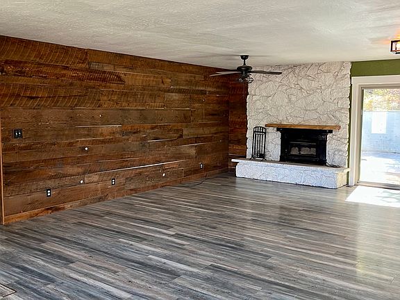 This custom-built home boasts a plethora of luxurious finishes throughout. The expansive living room provides an inviting space for relaxation and entertaining. The newly remodeled kitchen is a chef's dream, featuring a stunning live-edge countertop that adds a touch of rustic elegance. Cozy up by the warmth of the wood-burning fireplace on cooler evenings.
