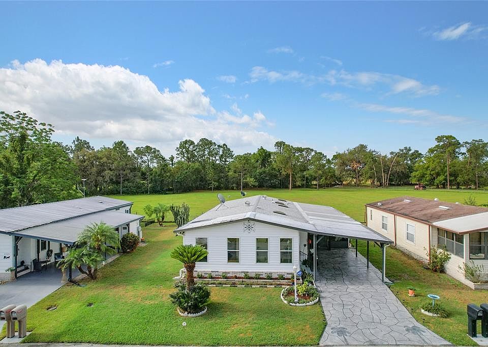 Welcome to this beautifully maintained 2-bedroom, 2-bathroom manufactured home with an office in the desirable 55+ community of Brookhaven Village, where you OWN your land! Situated on a large lot with no rear neighbors, this property offers an incredible sense of privacy and tranquility. From the moment you enter, you’ll notice the care and updates that have gone into this home over the years. Features include updated windows, fresh interior paint, and modern flooring throughout. Both the roof and AC were replaced within the last 5 years, ensuring peace of mind for years to come. At the front of the home, the Florida room is fully enclosed and equipped with central air and heat, making it a comfortable year-round living space. The open floorplan flows seamlessly into a spacious living room, dining room with built-ins, and a bright kitchen offering ample cabinet and countertop space. The refrigerator was replaced 2 years ago, and the kitchen and bathroom cabinets have been repainted with updated hardware and modern light fixtures added for a fresh look. Down the hallway, you’ll find a dedicated office, ideal for working from home or enjoying a favorite hobby. The guest bedroom includes a walk-in closet, and the guest bath has been tastefully updated. The oversized primary suite is located at the back of the home and features a large walk-in closet and an ensuite bathroom with dual sinks and a walk-in shower. Step outside to your screened-in lanai, perfect for morning coffee or afternoon relaxation. Beyond that, the backyard oasis features a paved patio and serene views; your own private retreat. Hurricane shutters were just installed, adding extra protection and value. The low $34/month HOA fee includes access to the clubhouse, heated pool, shuffleboard courts, and storage area (upon availability). Brookhaven Village offers a prime Central Florida location close to HWY-27, providing easy access to I-4, Tampa, Orlando, and both Gulf and Atlantic beaches. Be sure to explore the 3-D virtual tour, then come see this wonderful home in person. Whether you’re escaping cold winters or seeking an affordable year-round lifestyle, this home is ready for you to enjoy the Florida sunshine. Schedule your private showing today!
