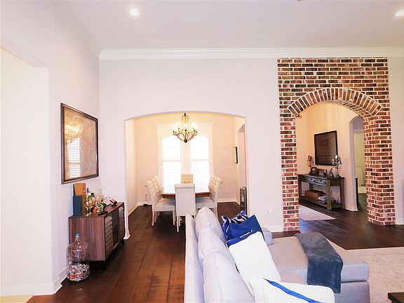 BARRINGTON HEIGHTS BEAUTY! Gorgeous 4 bedroom 3 bath 3 car garage with all the bells and whistles! Brick archway entry with beautiful wood floors through-out. You'll enjoy entertaining in this kitchen with custom cabinets, large granite island, and stainless appliances, double ovens and a commercial Viking stove, and a pot filler, and a large pantry, all under high ceilings with exposed beams. Master features trey ceilings, recess lighting, and lots of windows for natural light! Master bath has a luxury garden tub, separate shower with 2 shower heads, tile floors, and a large closet. Enjoy the back yard with privacy fence and covered patio. You must see this one in person!