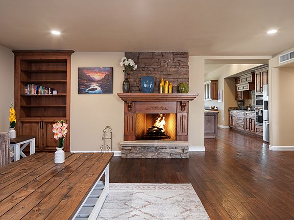 The four thoughtfully designed bedrooms offer comfort and space for all. The primary bedroom is a spacious retreat featuring a king bed, Smart TV, work station, walk-in closet, and backyard access, plus an en-suite bathroom with a dual vanity, jetted tub, get-ready vanity, and stand-in shower. The second bedroom is ideal for families or groups, with two bunk beds each with a queen bed on the bottom and a full bed on top along with a Smart TV and walk-in closet. The third bedroom offers a king bed, work station, closet, and Smart TV, and is conveniently located near the second bathroom with a single vanity and shower/tub combo. The fourth bedroom, located near the third bathroom, is perfect for larger groups with two bunk beds (four queen beds total), a Smart TV, work station, closet, and direct access to the front of the home.