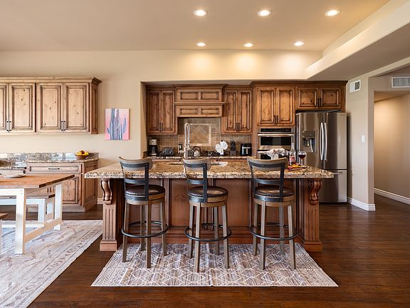 Designed for both relaxation and entertainment this home offers plenty of space to gather, unwind, and have fun. The main living area invites you to sink into the oversized sectional and enjoy a movie night on the Smart TV, while the second living area, just off the kitchen, provides additional lounge seating, another Smart TV, and seamless access to the backyard. For those craving a little friendly competition, the game room is a standout feature, complete with a pool table, Smart TV, and easy access to the backyard. At the heart of the home, the fully equipped kitchen boasts sleek stainless steel appliances, ample counter space, and a spacious island with bar seating for three, making it easy to whip up anything from quick snacks to full-course meals. Nearby, the dining area with seating for eight offers the perfect spot to gather and enjoy good food and great company.
