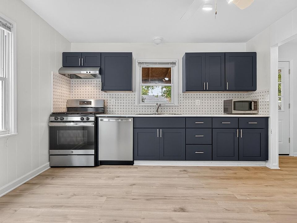 This beautifully ranch offers a bright living room with easy one-floor living with a flat, fenced yard. The spacious living room opens to a fantastic new kitchen, perfect for entertaining and everyday living. New flooring flow throughout the home, which features three comfortable bedrooms and a remodeled full bath.
