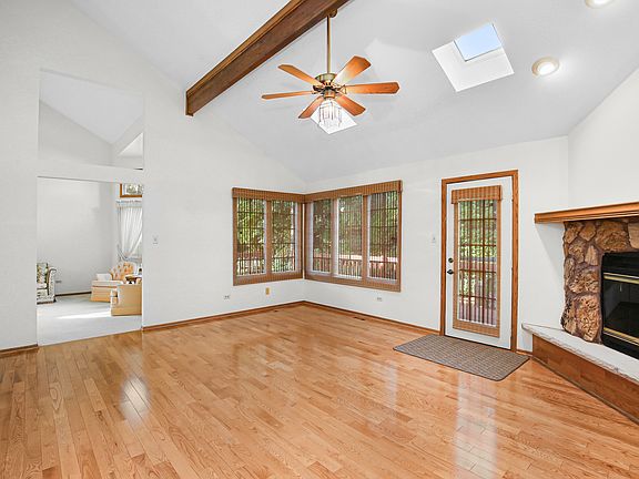 Stylish, Spacious & Maintenance-Free Living Awaits! Welcome to this beautifully appointed 2-bedroom, 3-bath townhome that checks every box. From its open-concept layout to its abundance of natural light, this home offers effortless comfort and timeless style. Highlights: Expansive great room featuring hardwood floors and a striking stone fireplace. Six skylights (installed just 3 years ago) flood the space with light. Hunter ceiling fans in every room for year-round comfort. Generous closet space, including walk-in closets. Large main-floor laundry room for added convenience. Versatile loft space-perfect as a home office, lounge, or optional 3rd bedroom. Finished basement with a 3/4 bath, ideal for guests or recreation. Ceramic tile entryway that seamlessly connects each room. Newer appliances, with A/C and furnace just 10 years old. Electric kitchen stove with gas hook-up available for your preference. Roof, gutters, and downspouts replaced 3 years ago. Spacious wooden deck overlooking beautifully landscaped grounds. 2.5-car garage, partially paneled for added utility. Sump pump with backup system for peace of mind. Monthly HOA covers snow removal, lawn care, garbage service, and bush trimming. Why Wait? This close-knit community offers the perfect blend of privacy and neighborly charm. Whether you're downsizing, upgrading, or simply seeking a low-maintenance lifestyle, this townhome delivers. Schedule your showing today and discover the ease of living at its finest!