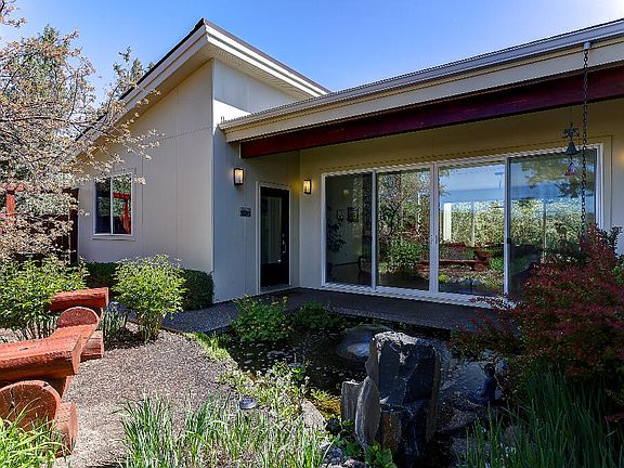 Single-level modern beauty and adjacent building for a total of 2,864 sq. ft. The adjacent building can be your telecommuting office, man cave, art studio, gym or use your imagination. The living and dining room overlooks your private lush oasis with exposed aggregate patios, 2 ponds with rushing water features on the East and West sides, and gorgeous lush green fields and cascade mountain range views. 1.4 Acres of tranquility all with irrigation rights and surrounded by 40 & 60-acre properties giving you the rural feel without having to work the fields and minutes from downtown Bend in Tumalo. The den\bd has been made into a huge office with build-ins and could easily be converted back to a bedroom with a closet. Oversized garage, shed, plenty of acreage for an RV barn, boat, toys storage, in-outdoor Pickleball court with mountain views. Low-maintenance vinyl fencing and solar-powered gate. Each building has its own electric panel, one with an RV hookup. A Must See, Not a Driveby!!