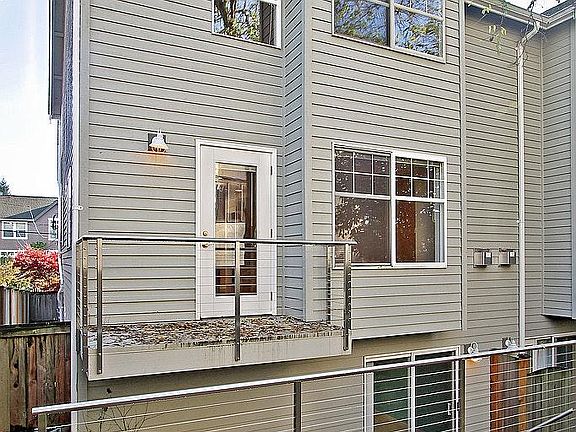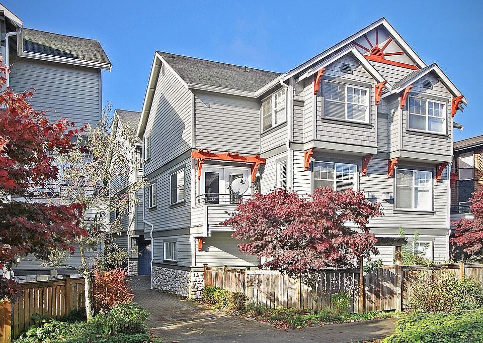 Quality constructed Ravenna townhome with upgrades! Open great-room floor plan with hardwood floors, built in bar and wine glass cabinetry, gas fireplace & walk out private patio with room for a BBQ. Kitchen features granite counter tops, updated stainless steel appliances including touch-less faucet, instant hot water dispenser, spacious eating bar & separate dining area. The upstairs includes 2 bedrooms with attached bath and a full size laundry room with storage closet. Downstairs has a bedroom or room for entertaining off of the unique 2 deck private backyard which is perfect for BBQ's, kids, pets and relaxation-- very rare in an in-city townhouse. Decks are made of Trex for easy maintenance and have custom built stainless steel railings. 1-car attached garage with some storage space. Easy access to UW, bus lines, shopping & neighborhood conveniences. With only 8 units in the complex, there are no HOA dues. You will not find another townhouse like this!