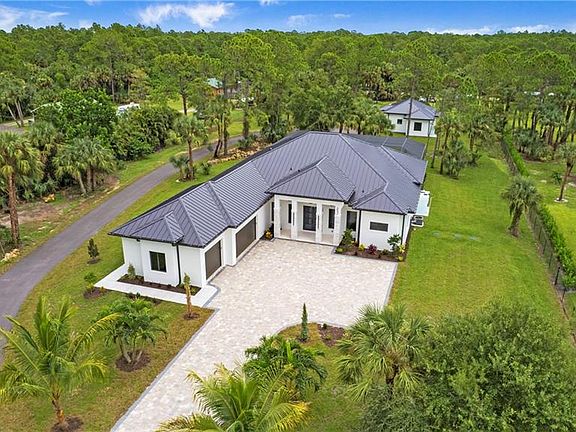 A rare Golden Gate Estates opportunity—this brand-new 2025 custom estate includes not just a luxury main residence, but also a full 2-bedroom guest house with immediate income potential. Enjoy estate living with resort-style amenities on 2.73 acres of 100% uplands, where privacy, horses, and space for your dream workshop come together. This brand-new 2025 custom-built property is truly one of a kind, offering not one, but two residences designed for multigenerational living, in-laws, extended guests, or income potential. The main home spans nearly 2,800 sq. ft. under air with 4 bedrooms + office, 3 baths, and a 3-car garage. Inside, 12’–14’ tray ceilings with LED accents, wood-look porcelain tile, and an open-concept design bring both elegance and comfort. The chef’s kitchen showcases quartz waterfall countertops, double ovens, and a designer cooktop with stainless hood. Retreat to the spa-inspired primary suite with a luxurious bath and custom walk-in closets. Step outside to the resort-style lanai featuring a summer kitchen, tongue-and-groove ceiling, and a heated saltwater pool & spa framed by a picture-window screen. The guest house offers immediate rental or Airbnb income potential, with over 1,100 sq. ft. total, including 2 bedrooms, 2 baths, a private lanai, outdoor kitchen, and separate driveway. A true retreat for family, guests, or generating passive income. Additional highlights include: impact-resistant windows/doors, standing seam metal roof, spray-foam insulation, whole-house reverse osmosis, and 400-amp electrical service. With no HOA, you’re free to fence your acreage, park RVs/boats, bring your horses, or add more structures. Ideally located west of Wilson Blvd, you’re minutes from Collier Blvd, Vanderbilt Beach Rd, Founders Square, restaurants, and healthcare. Two homes. One property. Endless possibilities.Additional highlights include: impact-resistant windows/doors, standing seam metal roof, spray-foam insulation, whole-house reverse osmosis systems, and 400-amp electrical service. With no HOA or restrictions, you have the freedom to fence, park RVs/boats, or add more structures on your fully usable land. Ideally located west of Wilson Blvd—the most sought-after section of Golden Gate Estates—you’re just minutes to Collier Blvd, Vanderbilt Beach Rd, Founders Square, restaurants, and healthcare. Two homes, one property, endless possibilities. Combined, both residences offer nearly 3,750 sq. ft. under air, with a total of 6 bedrooms, 5 bathrooms, and 2 full kitchens—two homes, one property, endless possibilities.