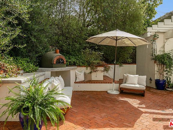 In the serene and highly sought-after neighborhood of the El Medio Bluffs, this charming 3-bedroom, 2-bath home offers the perfect blend of coastal living and timeless elegance. Situated on a peaceful, tree-lined street just a short stroll from the bluffs with breathtaking ocean views, this home provides a tranquil retreat for families looking to enjoy the best of Pacific Palisades. As you step through the front door, you're welcomed by the warmth of a cozy fireplace, setting the tone for this beautifully upgraded home. The kitchen has been thoughtfully designed with custom cabinetry and luxurious Arabescato marble countertops, opening up to a bright secondary living or dining area. Hardwood floors extend throughout the home, offering a seamless flow between spaces, while indoor/outdoor sliding doors invite you to enjoy the sunny Southern California lifestyle year-round. The primary suite feels like it's straight out of a Nancy Meyers film; soft, cozy, and inviting, it's the perfect sanctuary to unwind. The ensuite bathroom is nothing short of exquisite, featuring custom unlacquered brass fixtures, unglazed zellige tile floors, a stunning Ann Sacks marble shower, and a custom floating vanity with built-in drawer power outlets. French doors lead out from the suite to a charming courtyard, complete with a brick wood-fire pizza oven, ideal for family gatherings or evenings spent with friends. The backyard is tiered, offering multiple serene spots to enjoy warm evenings under the stars. A flat, grassy area provides the perfect space for children to explore, play, and create their own adventures. The home is equipped with a state-of-the-art security system designed by X-Tech Security. Filled with wonderful memories and crafted to nurture family life, this home, with its chic upgrades, tranquil setting, and in the Marquez school district, offers a unique opportunity for the next owner to create their own special memories in Pacific Palisades.