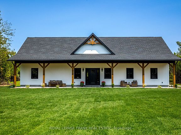 Absolutely Impressive! Create wonderful memories with this newly owner built luxury, custom ranch bungalow, nestled on 8.39 serene acres for your own tranquil playground. Imagine yourselves on your own private estate with beautiful trails to explore, a natural pond and skating rink, even a year-round bunkie - A Perfect setting. This exquisite and sophisticated home has been meticulously designed that showcases impeccable craftsmanship and upscale finishes throughout. Stunning open concept living with cathedral ceilings completes with an elegant living room and dining area. A gorgeous, custom designed kitchen has been crafted with exquisite tastes in mind. White oak cabinetry, massive center island with breakfast bar, all quartz surfaces, quartz tile backsplash, Samsung smart appliances, a pot filler, panel style dishwasher. Steps away to a separate coffee and wine bar, a 2nd pot filler, even a butlers pantry. The primary bedroom wing is elegant, luxurious and restful, with a full walk-in closet complete with custom cabinetry, lovely 4 pc ensuite with quality finishes, heated floors. There are 3 thoughtfully designed and abundantly spaced bedrooms with a lovely upscale 5 piece bath in a separate wing. A third 2-pc bath that is elegant as well the laundry room, that is complete with a Smart Samsung front load washer and dryer, custom beautiful cabinetry with a deep stone sink. The custom white oak staircase leads to a comfy loft area with an attached bonus room for a bedroom, office or sitting area. Front & back covered concrete porches boasting Douglas Fir posts, beams and ceilings with recessed lighting. Oversized, immaculate heated 2 car garage, complete with man cave. An ICF construction build from footings to roof for energy efficiency. Situated only 5 minutes to Bobcaygeon on a paved road for all amenities and services. Whether it's serene mornings overlooking nature scenes or exploring the trails, this is a retreat, a place to refresh and build your dreams.