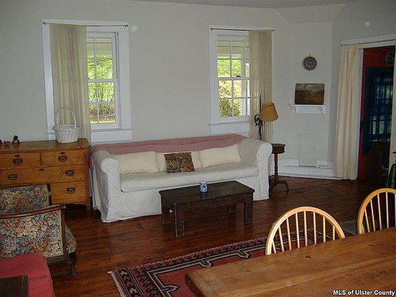 Simple. but charming 19th century farmhouse on 60 acres with panoramic views of meadows and the Shawangunk Mountain Range. Adorable interior with wide board floors, original doors and French doors leading to a new deck which overlooks the view. The 20x40 artist's studio is suitable for a variety of other uses. A beautiful stream bisects the property. The stream and the fact that there are some wetlands make the property unsuitable for large scale subdivision. This property is all about the setting,
