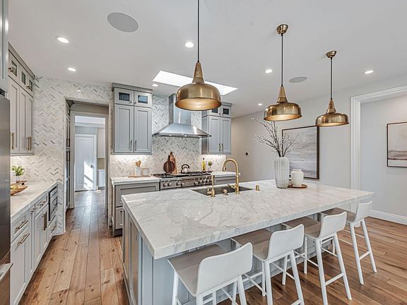 Beautiful surprise when you walk inside, a true MUST SEE single level home all remodeled in 2019. It offers 5 bedrooms 3.5 baths in the main house and another bedroom (or office) and full bathroom next to the garage in the casita at the back of the expansive lot. The chefs kitchen has a 5 by 9 center island with Calcutta Marble with breakfast bar seating for 4 and large sink. There is a 6 burner gas range, large skylight, butlers pantry and tons of storage. The floors are 5 inch wire brushed oak finished in a warm medium walnut tone. The perfect layout affords room for an office, guests and entertaining. Owned solar, LED lighting, central A/C and newer roof. The large primary suite in the back of the house opens to the pergola complete with Epay wood decking and television. Pavers run from the front to the detached garage in the back making changes to the driveway easy. There is even a chicken coop in the corner for your fresh eggs!