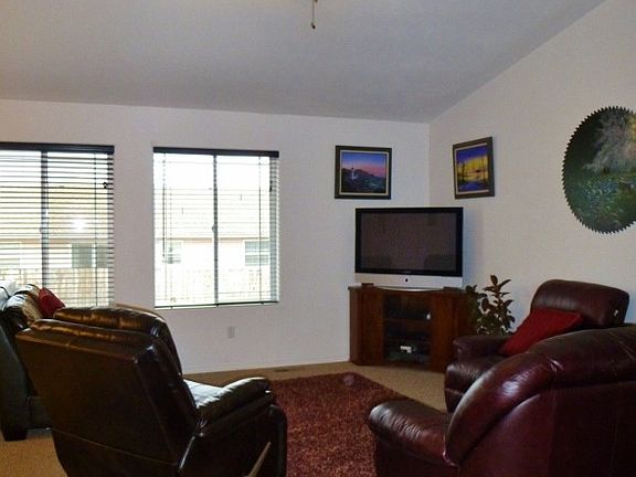 One level living with the perfect open floor plan. Vaulted living room invites you in. Kitchen is open to living room and has vaulted ceilings, tons of counter and cupboard space and a walk-in pantry. This home has three spacious bedrooms with a nice master suite. Master bedroom has great closet space and walk-in shower in master bath. Enjoy a great view of Saddle Rock and a concrete patio for summer entertaining in the fenced backyard.