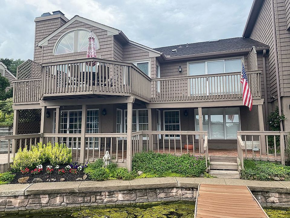 Welcome to luxury living at Mariners Point condos in beautiful Portage Lakes. This prime location condo has a dock right outside the walkout lower level. Beautiful expansive views of West Reservoir can be enjoyed from the main level via the floor to ceiling windows in the dining area or the deck. The main floor has a master suite with gorgeous lake views and access to the main level deck. This condo is a perfect place to entertain with wet bars and walkout patios on both floors. The attached double garage has plenty of built in and attic storage. There are also fire places on both floors and hardwood throughout.