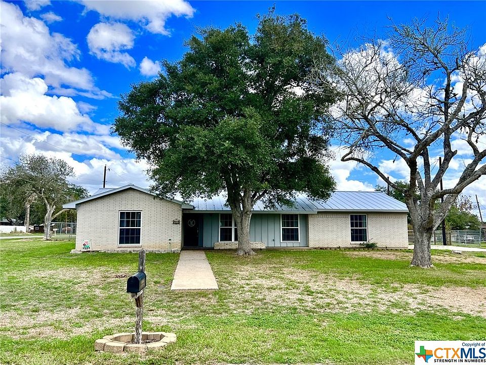 This beautiful home sits on a large corner lot in the historic town of Goliad. Home features 3 bedrooms, 2 baths, 3 living areas, formal dining area with a converted garage that makes a great large room for entertaining plenty of family and friends. This home has loads of updates. Updates include newer double pane windows through out, newer interior paint, newer metal roof installed in December of 2023 that included newer fascia boards and vents. The pool was resurfaced in May of 2022 and pump was replaced at that time as well. This home has a great layout with loads of space and storage. The living and kitchen are plenty spacious with a nice wood burning fireplace. The backyard has a nice large covered patio with a large fenced yard and beautiful pool. Home is located near schools. Dont miss out on this true find. This home is a must see. Seller is willing to owner finance. Schedule your showing today.
