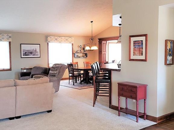 Awesome 2nd owner home on the edge of town. Very well landscaped 1 acre lot with large shed. Over 2,000 sq.ft on main level - large rooms - open floor plan - 2nd stairway from garage to basement & garage has 2nd door on rear of garage - finished basement with wet bar & fireplace.