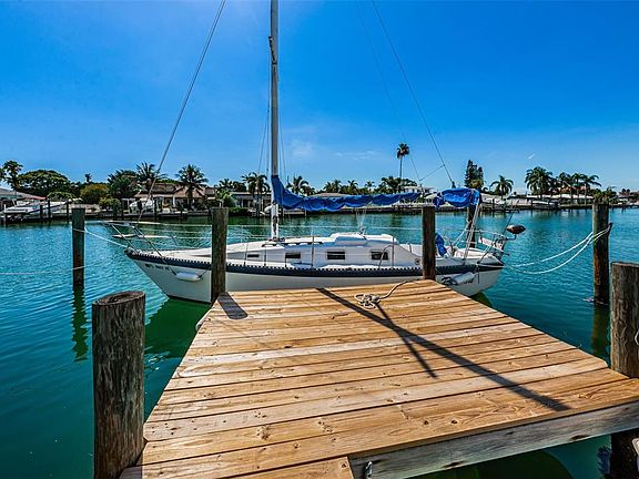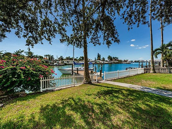 Welcome to your own tropical paradise! This is the island home you have been waiting for. This charming 3 BR, 2 bath BLOCK home is located in highly sought after Madeira Beach, on the open waterway and surrounded by tropical landscape. Step out to your private dock and watch dolphins and other sea life, and fish from your own backyard. Relax with the tranquil water and Enjoy breathtaking sunsets. The lovely blue/green front door welcomes you in with an island vibe. Enter the home in to the vibrant formal dining room. Next, is the stunning living room, which is accentuated by a gorgeous stone fireplace. The open floor plan make entertaining a breeze. You will enjoy cooking in the inviting chef's kitchen with a separate eat-in space, along with modern subway tile backsplash, butcher block countertops, farmhouse sink and bead board molding. There is tile throughout this home - no carpet. The owner's suite is spacious with recently updated ensuite bath and huge walk-in closet. The secondary bedrooms are also nicely sized, and share the second bathroom. In the back of the home you will find the bright and airy family room with nothing but water views! There has been a complete roof replacement (6/2022) along with replacement of the electrical panel and meter (2022.) Bring your boat and enjoy! Conveniently located near area shops and restaurants, and John's Pass. This isn't just a home, this is the true Florida lifestyle! Schedule your showing today.