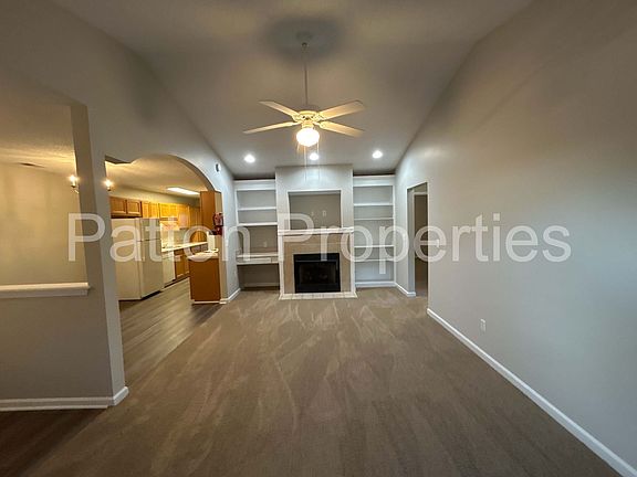 Decorative fireplaceShelves with recessed lightingBuilt-in entertainment centerNew carpetEat-in kitchenRear porch with storageNew lvp flooring