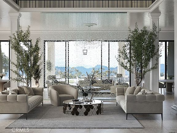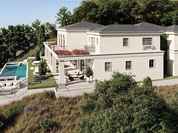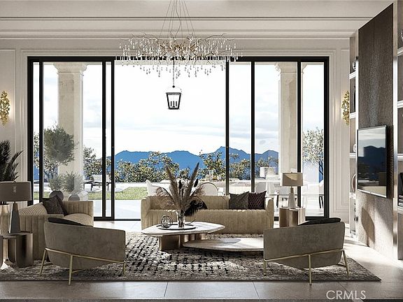 The sale includes fully approved design review plans for a Neoclassical-inspired estate totaling approximately 9,338 sq. ft., featuring 7 bedrooms, 6.5 baths, and over 1,300 sq. ft. of covered outdoor living space. The new design also incorporates a five-car garage, pool, spa, and sunken lounge area, all thoughtfully oriented to take advantage of the property’s panoramic views.