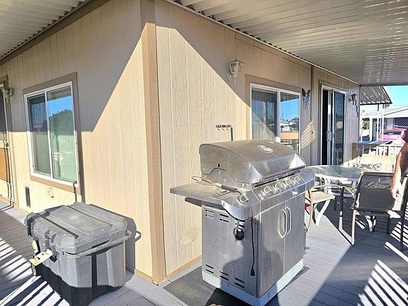 Well-maintained 2-bedroom/2-bathroom home with vaulted ceilings and wood laminate flooring throughout. Kitchen with plenty of cabinetry, stainless steel appliances and R/O system. Large living room adjacent to dining room area. Large primary suite with walk-in closet and attached private bathroom. Comfortably sized 2nd bedroom perfect for guests or use as a home office near guest bathroom. Enjoy the AZ weather on the wraparound deck. Huge finished shed with A/C for additional storage, crafts and projects! HVAC 2025, Wood Laminate Flooring 2022, Stainless Steel Kitchen Appliances 2022, Water Heater 2022, Dual Pane Windows 2019, Roof & Awnings 2018 and Plumbing 2017. Call Ellsworth Springs today to schedule your private showing of this home today!