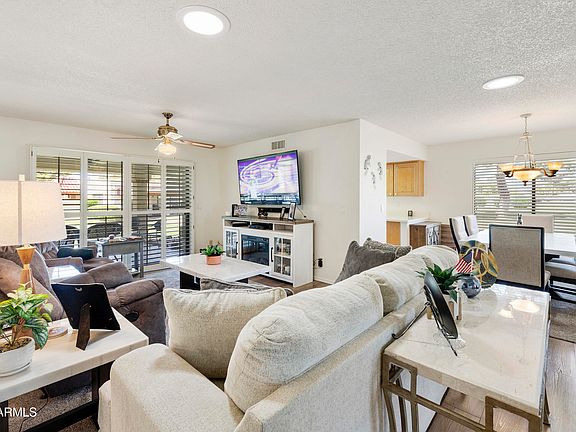 Discover easy living in this well-maintained La Jolla floorplan located in the highly desirable 55+ community of Fountain of the Sun. This 2 bed, 1.75 bath home features a functional split-bedroom layout, formal dining area, eat-in kitchen, and a bright breakfast room. The kitchen was updated in 2021 with soft-close cabinet fronts, newer appliances, disposal, and convenient roll-out drawers. Both bathrooms were refreshed in 2021 with matching cabinetry. Flooring was updated in 2021, and a new HVAC system was installed in 2022. Enjoy ideal North/South exposure, solar tubes that fill the space with natural light, and a spacious back patio with relaxing golf course views. Additional features include a double garage, extra-wide driveway, and washer/dryer in the garage. Pet Friendly! MORE.. Walking distance to the community pool and spa. PET FRIENDLY Area, Convenient to the US 60 and Red Mountain freeways, close to the Mesa Gateway Airport, Sky Harbor, and Costco! If shopping & dining out is your thing...Superstition Springs & San Tan Mall are a short drive away. Enjoy the Country Club & Golf Community offering a lake, and golf course. Lots of planned activities, pickleball, BOCCE, fitness, billiards, library, horseshoes, arts & crafts, card room, shuffleboard, and more! Birdie's restaurant is open daily!