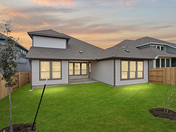 READY NOW! Step into the stunning Kendall model, where two-story ceilings create a grand entrance in both the foyer and great room. Elegant RevWood flooring flows seamlessly through the downstairs common areas, leading you into the gourmet kitchen with white upper cabinetry, chic gray lower cabinets, built-in stainless steel appliances, a beautiful apron-front farmhouse sink, and exquisite white quartz countertops. The expansive eat-in island provides a gathering place that overlooks the spacious great room, featuring a wall of windows that flood the space with natural light. Retreat to the primary suite, where relaxation awaits with a luxurious garden tub, a walk-in shower, and a generous walk-in closet. Privacy is paramount with the second bedroom and full bath conveniently located away from the main living areas, separated by a spacious full-sized study. Upstairs, the game room overlooks the great room and flows into a media room equipped with pre-wired surround sound. Bed 3 boasts its own en-suite bath and walk-in closet, while Bed 4 features a private bath just steps away. Step out the backdoor to the extended Texas sized covered patio and spacious backyard with greenbelt views!