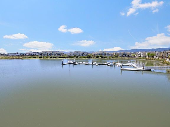 Top location in One Marina along the waterfront. This home enjoys bright morning and afternoon sun. Scenic views of the coastal range and the lagoon from your balcony. Wide rear driveway with easy access to spacious 2-car garage. This property consists of many top upgrades. Under sink water filtration system, crown molding, large baseboards, plantation shutters, granite kitchen countertops, chef's gas cooktop, extra storage for cookware, built-in cabinets in great room, laundry room, linen closet and all bedrooms feature custom closet systems. Full home AC. Recirculation system built in for the tankless water heater. New W/D, new dishwasher, water heater and garage door system. Upgraded hard wood flooring. Easy guest parking. Easy access to freeways and downtown Redwood City. Easy access to Bair Island Wildlife Refuge and Trail.