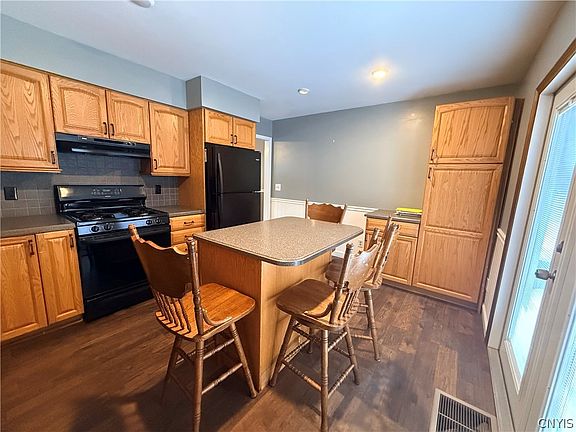 Welcome to this beautifully maintained ranch home, perfectly situated in a peaceful country setting while still being just minutes from city amenities. This inviting home features an eat-in kitchen complete with a center island and solid surface countertops, ideal for everyday living and entertaining. The bright living room showcases a charming bay window and brand-new flooring, creating a warm and welcoming atmosphere. Three comfortable bedrooms are conveniently located on the main floor, along with a tastefully remodeled bathroom. Additional highlights include new windows, central A/C, and a finished basement recreation room with gas fireplace offering extra living and entertaining space. Outside, you’ll find an attached garage, paved driveway, concrete sidewalks, and a huge fully fenced backyard with three gates—perfect for pets, play, or gatherings. A concrete patio and storage shed add even more functionality to this wonderful property. A perfect blend of comfort, convenience, and country charm—don’t miss this opportunity.