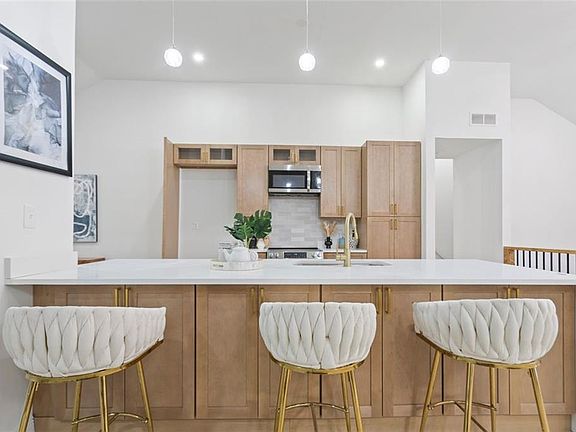 This stunning home combines modern design, space, and comfort throughout. Exterior upgrades include professional landscaping, fresh paint, and a spacious patio overlooking a large private backyard-perfect for entertaining or relaxing. Step inside to an open floor plan with new White Oak Somerville LVP flooring, a 9-ft white quartz waterfall island, natural oak 42" Belgrade cabinets, SS appliances, and a rebuilt gas log fireplace. The main-level owner's suite offers a spa-like bath with soaking tub, frameless glass shower, and expanded walk-in closet. Lower level features a private office w/French doors, guest bedroom & full bath. Terrace level adds 2 additional bedrooms, full bath, and flex space ideal for media, fitness, or family room. Additional upgrades include new insulated windows, iron stair railings, designer lighting, updated electrical & plush new carpet. A true showcase of modern luxury and functionality! Schedule a showing today !!! THIS HOME WILL NOT LAST LONG! Exceptional neighborhood, and close proximity to stores, food and entertainment.