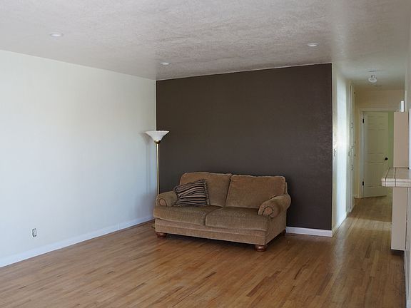 Charming single family home an updated kitchen, new stove and diswasher. Home has been freshly painted inside and out and has hardwood flooring throughout. The bathrooms have been remodeled with new vanities and a new full bath. All bedrooms have large closets and ceiling fans. There is an attached laundry next to master bath and bedroom. Plenty of shade in backyard with fruit trees and a vinyl cover patio. If interested, rental applications to be provided with a $45 non-refundable credit check fee, with proof of income. Gardener will be provided. Utilities are not included and a small dog will be considered with a $450 non refundable pet fee.