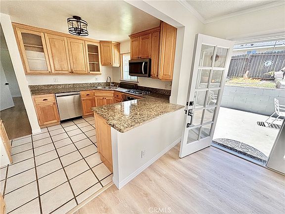 Key modern upgrades include rigid waterproof plank flooring throughout, French doors, a spacious kitchen with built-in stainless steel appliances (oven, cooktop, microwave, and a new dishwasher), and a primary bedroom with a brand new bathroom. The home also features double-paned windows for enhanced energy efficiency and noise reduction, a new water heater, an upgraded electrical panel, and more. The enclosed front and back yards offer a safe and tranquil space.