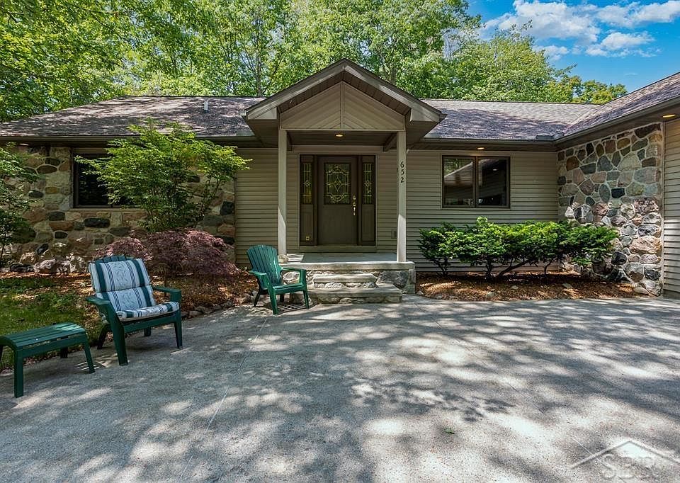 The end of the road! This beautiful property rests at the end of Sundown Trail, and opens up to a world of recreation and entertaining on the soon returning Sanford Lake. 3 Bedrooms, 3 full baths make living arrangements very convenient. The open living, dining, and kitchen gives way to a large deck overlooking the huge lot. The cathedral ceilings, clothed in knotty pine and a floor to ceiling stone fireplace, give you an ongoing resort feeling. The level lot allows easy access to the water. The master suite boasts a second fireplace, walk-in closet, main floor laundry, and quick access to the hot tub and sauna room. A 3 car, attached garage, with work area, and stairs leading to storage above meet all of your storage needs. This is one floor living at it's finest!