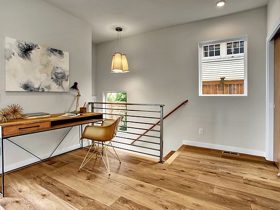 Stunning Modern New Construction with high-end finishes and attention to detail throughout. Open and bright main level includes living room with gas fireplace, a chef’s kitchen featuring Chroma Quartz counters and stainless appliances, including a 36-inch Thermador gas range. Spacious master suite with 2 walk-in closets and a spa-like bathroom with shower/tub combination. Great floor plan has 4 bedrooms all on one level, plus a top floor family room that opens up to an amazing roof top deck! Systems include on demand tankless water heater, mini-split heating and cooling and cat 5 wired. Fantastic lower Phinney/Ballard location, must see!