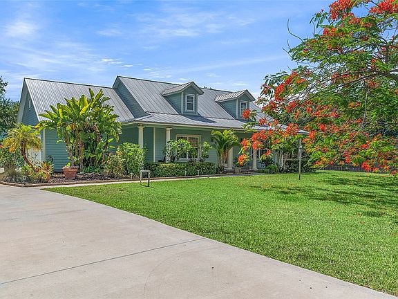 Tucked on nearly an acre in Vero Beach, this CBS home with Hardi-plank siding features an open layout with travertine floors, granite counters, tray/vaulted ceilings, and a spacious upstairs loft. Enjoy the covered front porch or back patio surrounded by lush landscaping. The primary suite boasts a custom closet, en-suite bath, and double doors to the yard. Metal roof, 2-car garage, and a 2,040 sqft bonus workshop with 16-ft ceilings. Zoned A-1. Room sizes are approximate and subject to error.