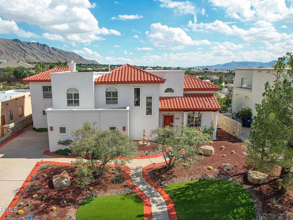 Experience luxury and efficiency in this 3,740 sq ft two-story home nestled on nearly half an acre in the prestigious Park Hills community of West El Paso. Featuring 4 bedrooms and 4 bathrooms, this residence combines elegant living with stunning, unobstructed mountain views. Enjoy a chef-inspired kitchen with high-quality white appliances, two spacious living areas, a formal dining room, and tile floors complemented by plush carpet in the bedrooms. The upstairs primary suite opens to a covered deck ideal for relaxing sunsets. Fully equipped with an 11.02 kW Tesla Solar Panel System, three Powerwalls (13.5 kWh each), and two Wall Connectors — all owned and paid off — this home offers premium comfort and energy independence. The home has newer HVAC systems and a water softener. Outside, the no-maintenance landscaping, mature trees, and quiet cul-de-sac location create a serene retreat. Come see this HOA community with well-kept streets and a true sense of pride of ownership.