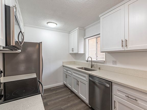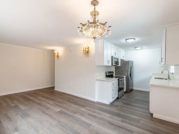 Great 2-bedroom, 1-bathroom lease available in Reseda with a community pool! The condo is move-in ready with 742 SqFt. and features an open floorplan and a detached 1 car garage. Beautiful laminate floors carry through from the living area into the kitchen and a dining area. The dining area features a Swarovski light fixture. The kitchen offers plenty of cabinet space, sleek counters, and stainless-steel appliances. Both bedrooms are spacious and carpeted with one having a walk-in closet. A large vanity and shower/tub fit well in the modern bathroom. Enjoy the community pool and patio just outside your door. Near Victory Blvd. markets, shopping and restaurants. Close to Pierce College and the 101-freeway, and less than 2 miles from popular Ventura Blvd. A charming condo in a prime spot!
