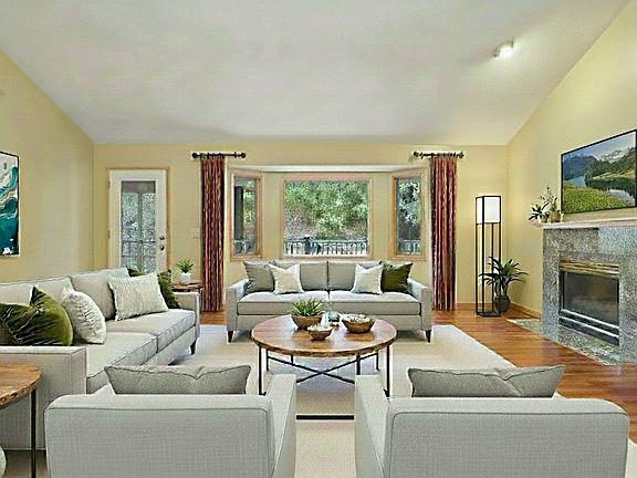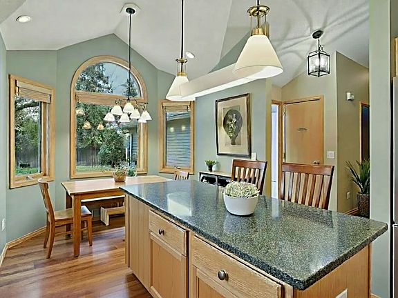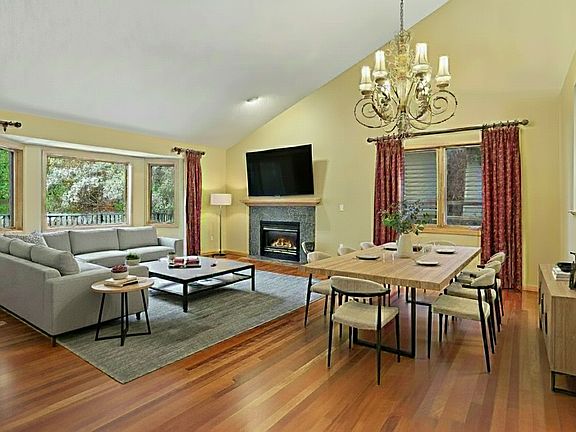 level features large vaulted living room, fireplace, large eat-in kitchen, cozy den/office space,