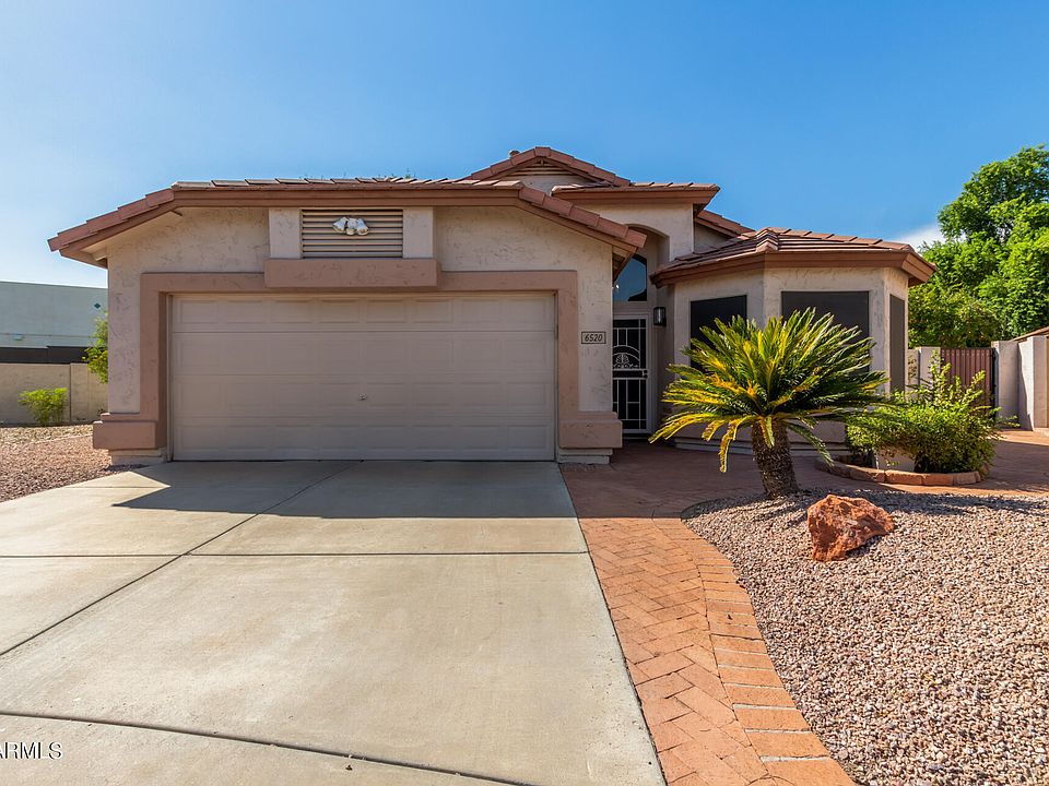 Nestled on a quiet cul-de-sac and oversized lot! This delightful residence is the epitome of suburban serenity. Upon entering, be greeted by the seamless living & dining room featuring a bay window, carpet & tile flooring, vaulted ceilings, & plantation shutters in all the right windows. The kitchen comes with recessed & pendant lighting, espresso cabinetry, built-in appliances, granite counters, & a quartz island w/a breakfast bar. Retire to the main bedroom, boasting a walk-in closet, a private bathroom w/dual sinks & outdoor access. The backyard blends function & natural beauty, offering a covered patio, storage sheds, & mature shade trees. Experience the charm & tranquility in this value!