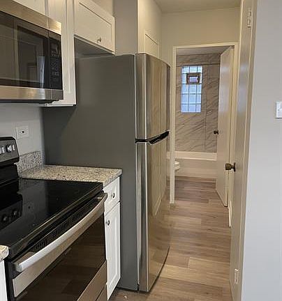 BERWYN one bedroom one bathroom completely rehabbed apartment. New kitchen; white shaker kitchen cabinets, granite countertops, stainless steel appliances, hardwood type flooring throughout, heat included, laundry ON SITE.