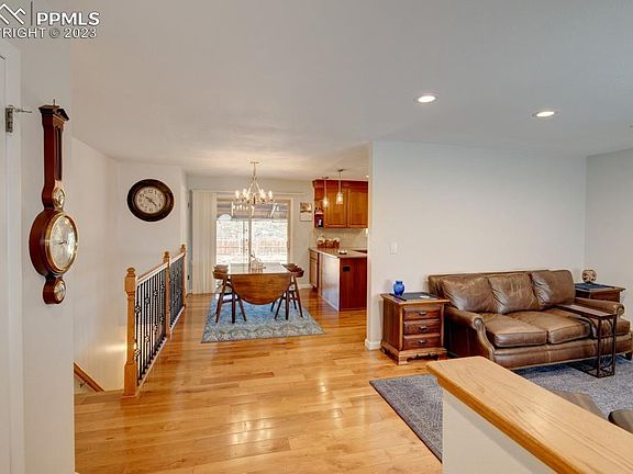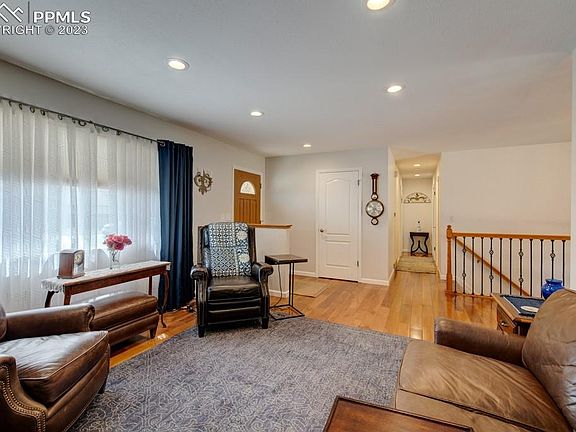 Welcome home to your turn-key oasis in the heart of Colorado Springs! Come check out this immaculately maintained ranch home in the established District 20 Erindale neighborhood with only two prior owners! This home welcomes you from the entryway with 3/4" hickory wood flooring throughout the main level. The open concept floorplan allows for easy entertaining with access to the kitchen, dining room, and living room off the front entrance. Three spacious bedrooms are accompanied by two newly renovated full bathrooms featuring new toilet fixtures, upgraded height vanities, and maintenance free grout on newer tile floors. The dining room sliding doors open to a large, covered patio featuring a full row of sunshade blinds and a sprawling back yard with room for additional landscaping and a full sprinkler system ready to make your gardening dreams come true! All new gutters surrounding a certified roof also feature a Leaf Guard system for easy maintenance. An extended 26ft garage allows for larger vehicle storage or workshop space. The basement is newly remodeled and features luxury vinyl flooring in the family room and upgraded deluxe carpet padding in the 2 bedrooms accompanied by a full bathroom with a new vanity. Other recent upgrades include a new HVAC system and whole home humidifier, fresh R60 insultation, a recently tested radon mitigation system, recently cleaned air ducts, and a recently cleaned main line. Home comes with a Ring doorbell system and four security cameras. The pride-in-ownership and extras make this home completely move-in ready, schedule your showing before it's gone!