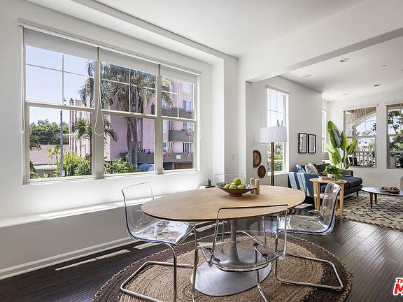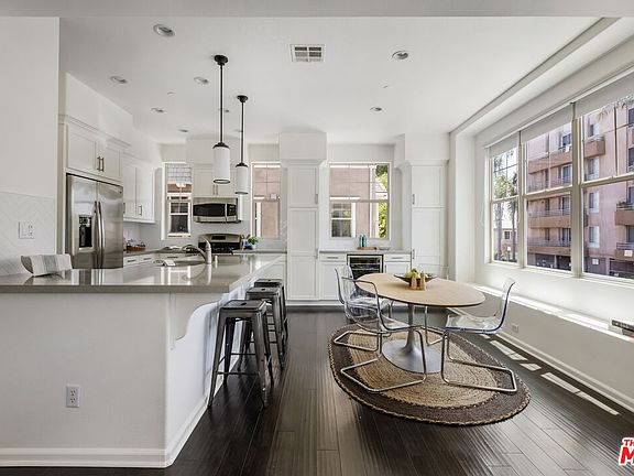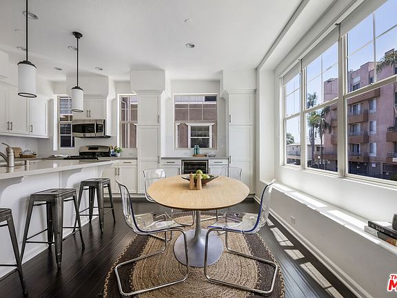 Welcome to The Gatsby Hollywood, a stunning modern development by Far West Industries, just blocks south of Sunset Blvd and moments from LA's premier dining and entertainment. Located in a quiet residential pocket, this southwest-facing END UNIT enjoys abundant natural light, creating a bright, airy feel throughout the day. The home features 2 spacious bedrooms with walk-in closets, 3 bathrooms, and a versatile Den/Office that can easily function as a 3rd bedroom or guest room. Soaring 9-foot ceilings throughout the home enhance the open-concept design, adding volume, light, and a true sense of space. The expansive kitchen features custom cabinetry, European quartz countertops, stainless steel appliances, and a built-in wine cooler perfect for entertaining. It flows seamlessly into the dining area and large living room, all finished with engineered hardwood floors, dual-pane windows, and recessed lighting. Enjoy panoramic views from Downtown LA to the Hollywood Hills on the sun-drenched rooftop deck, complete with turf, sun loungers, and a Bose surround sound system, including outdoor speakers. Ideal for entertaining from sunrise to sunset. Additional highlights include: GE security alarm system with Nest cameras, a Nest thermostat with integrated smoke and carbon monoxide detectors, 12 state-of-the-art solar panels for eco-conscious living, a 2-car attached garage with red-fleck epoxy flooring and custom storage cabinets. No HOA and no Mello Roos. This home truly has it all: style, comfort, sustainability, and an unbeatable location.