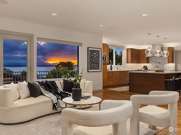 Welcome to celebrated Sunset Hill blending village feel to beach lifestyle w/this elevated contemporary home. Overlooking a spectacular kaleidoscope of vistas spreading North-South from Discovery Park to Shilshole Bay Marina & Golden Gardens, the house offers a fresh, functional & inviting living lending itself to a wide range of decor: the perfect balance of warmth and modern design w/its clean lines, open floor plan & interior/exterior flow. Among its many highlights: a sanctuary primary bedroom w/stunning water views, surprising privacy, private deck + spa bathroom w/steam shower; a full ADU w/separate entry; 3-car garage w/pet's shower. Discover the charm of the neighborhood: coffee shop/bakery, restaurants, waterfront promenade.