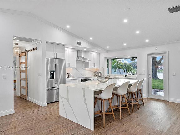 Step into this beautifully updated 4 bedroom 3.5 bath home with gorgeous water views. Remodeled over the last 2 years this home features a stunning open concept kitchen with white cabinets, stainless steel appliances, granite countertops and a large island. New flooring throughout including the huge primary suite with a new bathroom and walk-in closet. Newer impact windows and doors (2021), new AC, and new water heater! There is a beautiful screened in porch overlooking the large yard and lake. This home is a dream come true!