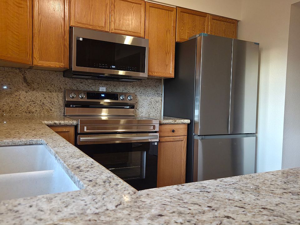 Brand new carpet, refrigerator, microwave, stove, faucet, washer, dryer, smart thermostat, paint, etc. Be the first to enjoy everything brand new! Granite countertops, tile downstairs and carpet in the bedrooms. The main bedroom is huge! There is also a lot of living room and dining room space.